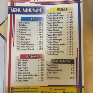 Dengan konsep rumah makan modern namun tetap mempertahankan nilai budaya Minang, Lamun Ombak menyajikan beragam hidangan seperti rendang, ayam pop, gulai tunjang, dan sambal lado hijau yang menggugah selera.