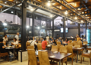 Bangunan kaca besar pada dua sisinya memungkinkan pengunjung menikmati pemandangan kota, menjadikannya lokasi yang cocok untuk bersantai, rapat bisnis, atau makan romantis di malam hari.